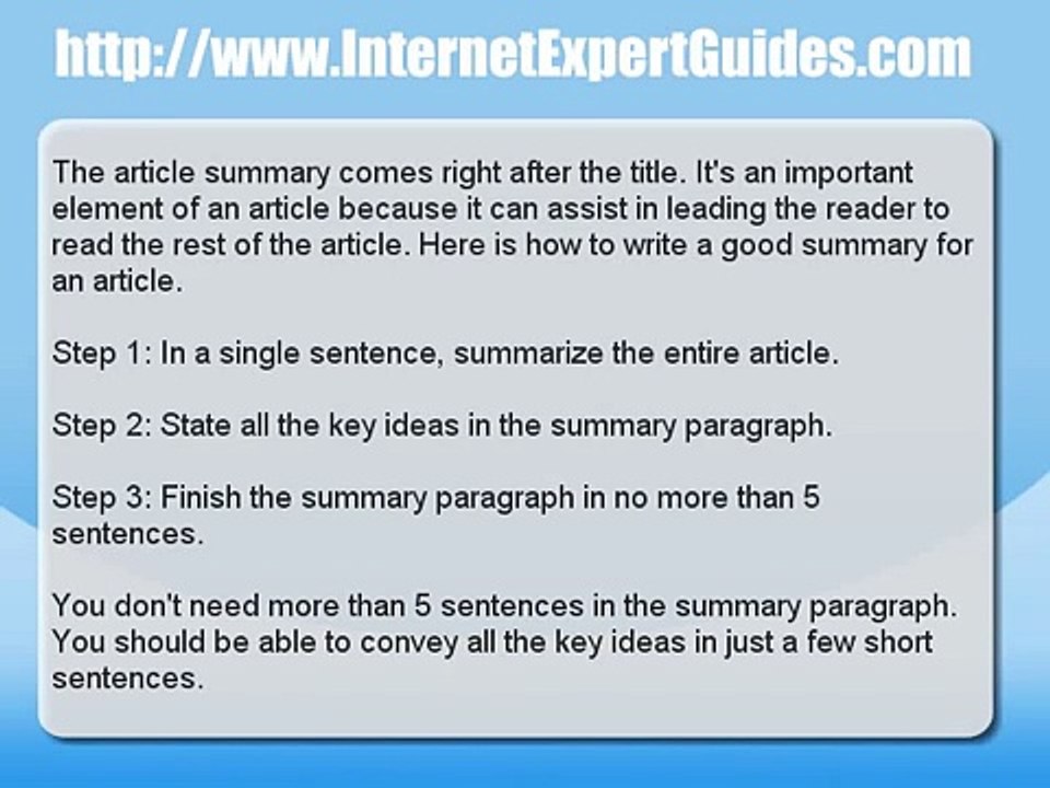 Article Marketing Tip How To Write A Summary For An Article