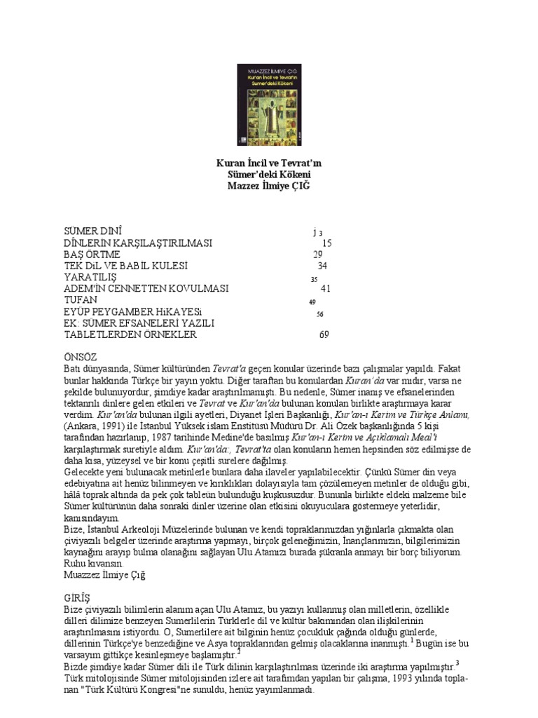 Kuran Incil Ve Tevrat In Sumer Deki Kokeni Mazzez Ilmiye Cig Pdf Ucretsiz Indirin