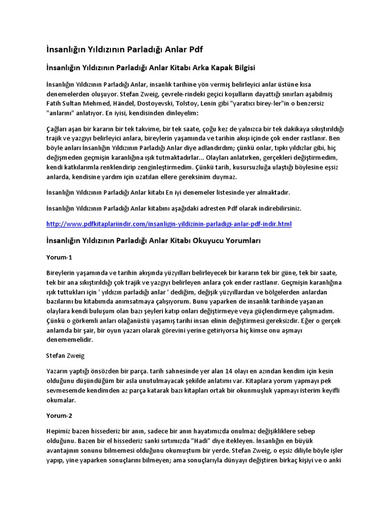 Insanligin Yildizinin Parladigi Anlar Pdf
